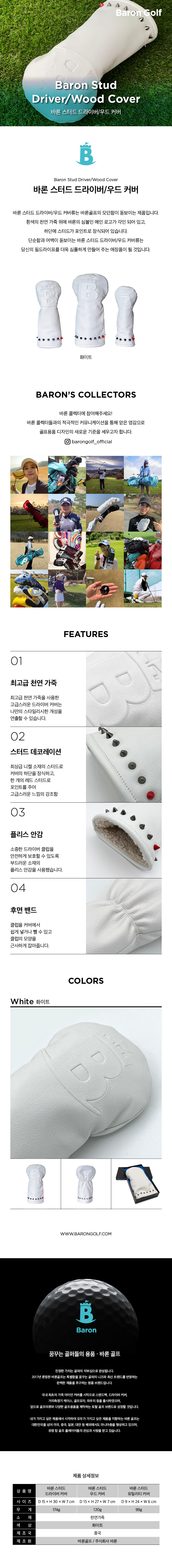 바론 스터드 헤드 커버는  모던한 디자인을 적용한 새롭고 신선한 시도로 만든 멋지고 스타일리시한 우드 클럽류 커버입니다.