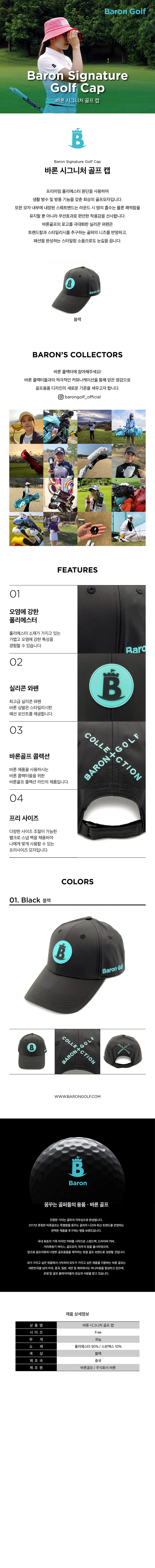 영국의 그래픽 아티스트 스티븐 윌슨(Steven Wilson)이 작업한 바론(BARON)의 타이포그래피(Typography)를 반영한 골프 캡 (Golf Cap) 입니다.